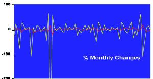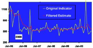 In the Central Statistics Office (CSO) many short-term economic indicators can have sudden irregularities, known as structural breaks, that can severely distort the identification of underlying trends and growth rates. In some cases, filtering an economic indicator to detect and adjust for a structural break can greatly improve short-term analysis. The approach adopted is based on state-of-the-art developments in automatic linear Autoregressive Integrated Moving Average (ARIMA) time series modelling. In contrast, traditional ARIMA modelling requires expert manual intervention and analysis. The first step in filtering an economic indicator involves automatically removing the effects of short-term fluctuations that increase in amplitude over time. Filtering then proceeds to detect and remove first and second order changes in the long-term movement of the economic indicator. This step ensures the resulting economic indicator is stationary. The second filtering step automatically estimates a multi-plicative seasonal ARIMA model. Using an appropriate fixed regular, that is non-seasonal part-model, the remaining seasonal part of the ARIMA model is estimated. Then, with the seasonal part fixed, the regular part of the ARIMA model is estimated. Finally, the regular part is again fixed and the seasonal part of the ARIMA model re-estimated. This process generates a sequence of multiplicative seasonal ARIMA models. The model with the smallest Bayesian-Information-Criterion (BIC) is chosen as the one that is the �best� representation of the economic indicator. The final filtering step detects and adjusts for structural breaks in the economic indicator. Using the estimated seasonal ARIMA model, this step conducts a sequence of regressions based around an intervention analysis model. The intervention analysis model allows for four alternative transfer function forms representing four alternative types of structural break. When a structural break is found, it is incorporated into the intervention analysis model and the sequence of regressions repeated until no further structural breaks are detected. The accompanying Figure shows (i) the Original Indicator and the Filtered Estimate and (ii) the corresponding monthly changes. Contact: [email protected] |