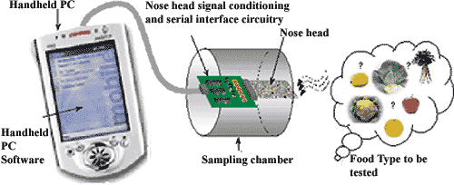 ![]() For people involved in the food industry who, through legislation, have a responsibility to ensure food quality and safety in all aspects of their business, the hand-held electronic nose is an essential tool for monitoring the freshness or ripeness of foods and checking the integrity of packaging. The objective of this project is to deliver a prototype hand-held electronic instrument with an integrated electronic 'nose' that will offer a cost-effective solution to the on-site measurement of the aroma pattern of one selected food type. The device will be useful in assisting the food industry to meet food safety regulations by establishing the fitness of the food product for human consumption. Unlike other commercially available devices that have inadequate levels of odour discrimination and response times useful for routine testing, advanced nano-technology sensors are developed to realise a performance approaching that of high-end systems. The application of a novel design and the development of faster pattern recognition algorithms reduces analysis times to less than ten seconds. The outcome will include a tested prototype for exploitation by a start-up company and a design protocol for expansion into other areas. The short-term goal is to develop the prototype of a consumer-friendly instrument that can be used to measure the aroma of one food item by its smell on a threshold basis, to determine its suitability for human consumption. The medium-term goal is to broaden the capabilities of this prototype to handle other foods. The long-term goal is to expand on the developments to produce a product that can detect the aromas found in other industries, such as those in the medical and environmental sectors. This project will address the short-term goal. The initial prototype will be designed as a pass/fail detector with audit trail facilities that can be used as an aid to activities such as stock rotation and the implementation of food safety regulations associated with the chosen food item. The Irish food sector will be specifically targeted in light of the ever-increasing stringencies placed on food safety when dealing with the sale of fruit, fish, meat, poultry etc. The project will deliver: a) An intelligent hybrid nano-particle detector module comprising an array or gradient of odour sensors with in-built temperature and humidity sensors for self-compensation. b) A sensor head with appropriate signal conditioning circuitry that can be connected to a reseller's Pocket PC (such as a Compaq iPAQ�). This will have the following functions and features: