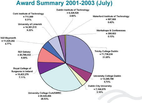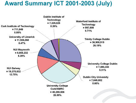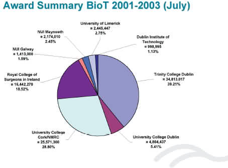 The three recipients will collaborate with world-leading research corporations and some of Ireland's most promising biotechnology and ICT companies. These include HP, Servier, Surgen / Aventis, Protagen, Allegro Technologies, Alimentary Health, Procter & Gamble and Teagasc, Ireland's agriculture and food development authority.