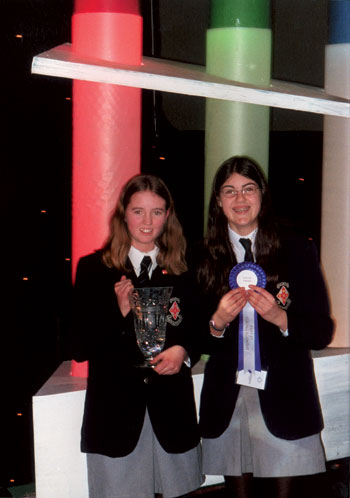 ![]() We wondered whether trees could take in this excess carbon as they use carbon dioxide while making their food. To do this, we measured the amount of new growth in a sample of young trees. We measured three different species, hawthorns, ash, and willows. To find the new growth, we measured the length of each twig from the most recent scale leaf scar (these are rings on the bark that mark where the new growth has started each year) and the diameter at the scale leaf scar. To find the volume of new wood in the stem we measured the length and diameter of the wood between the scale leaf scars down the stem. We took samples of stems of various diameters and measured the diameter of each of these and the diameters of their most recent tree rings. We put this on a graph and read off the diameters of the most recent tree rings for the stems we had measured. We calculated the total volume of new growth in each tree. Using a set rate for hardwood trees, we worked out how much carbon was in these volumes. Then we averaged each species. We divided these by the volume of carbon emitted in Ireland in one year, giving us the number of trees needed to be planted to balance carbon emissions. There is not enough land in Ireland for this. We concluded that Ireland should emit less carbon. Though we got an accurate enough answer, if we were to do this project again we would have to go around to different parts of the country and measure trees in different climatic conditions. Also we would have to measure more trees to help get a more accurate figure. Another point would be that older trees absorb more carbon than younger trees because they put on more carbon per year. R�is�n Stronach & Harriet O'Rourke entered their project in the Junior Group Section in the Biological and Ecological Sciences Category at the Esat BT Young Scientist & Technology Exhibition in January 2003. They won a Special Award sponsored by Met �ireann. Their teacher was Ms Louise Curtin.