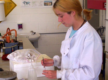 ![]() Haddock (Melanogrammus aeglefinus) is also a commercially important species in Ireland, with over �10million being generated from it in 2001. Haddock is found in Irish waters around the whole country and is separated into different stocks based on their location. There are little data as to whether this separation of the fish into different stocks has any genetic basis. The aim of the research is to analyse the population structure of Blue Whiting in the Northeast Atlantic and the population structure of Haddock around Ireland. Genetic variation, at the level of proteins, is being identified and quantified using gel electrophoresis. This technique separates different protein products of alleles (allozymes), and is followed by staining to visualize these protein products. The usefulness of the method lies in the fact that the genotype of an individual, with respect to the gene locus (loci) coding for a particular protein, can be inferred from the banding pattern on the gel. From the results, one can ascertain the population structure of the fish, yielding data on breeding habits, reproductive strategies and stock structure. If there are discrete stocks present, there can be implications for management of the fishery. The research is funded by the Department of Education�s Technological Sector Research Program, Strand 3 (2002-2005). Contact: Karen McCrann & Dr Elizabeth Gosling, Molecular Ecology Group, School of Science, Galway-Mayo Institute of Technology, Galway; E-mail: [email protected] , [email protected] |