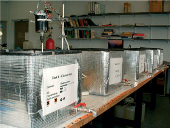 ![]() ![]() Pilot plant in operation GMIT has collaborated with world leaders Henkel and Chemetall to investigate state-of-the-art processes - autophoretic and silane chemistry. The group has carried out research with Thermo King, which has resulted in dramatically improved corrosion protection, in addition to substantial savings in water usage, reduced chemical consumption, and enhanced environmental performance. Solvent usage has also been virtually eliminated. Contact: Dr Sean � Muircheartaigh, Lynda Phelan; Research and Consultancy, Physical Science Department, GMIT; Tel: 091-742230; E-mail: [email protected] , [email protected] |