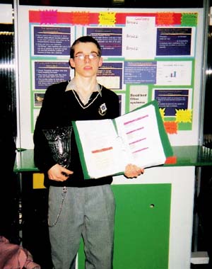 ![]() Reed beds consist of four ponds filled with wetland plants. Reeds catalyse the breakdown of slurry effluent, silage effluent and dairy washings to give clean unpolluted water which can be released directly into our streams. Reed beds bind carbon in the soil and return nitrogen in the waste to the atmosphere as gas. I examined water samples from reed beds in my local area. They deal with huge amounts of run-off water, which would be high in nitrates and phosphates, which could potentially cause eutrophication. The reed bed lowered the Biological Oxygen Demand of the water significantly, and therefore it will not produce this excessive algae growth. According to farmers, it takes a lot of pressure off the slurry tanker processing farmyard waste. Time and expense are saved as no spreading is necessary, there are no running costs, and no labour or machinery required. I also discovered that the reed beds provided a habitat for wild life such as pheasants, water hens and grouse. Some South-East factories that incorporate them have fish and wildlife inhabiting the last bed, including trout, a pollution sensitive fish. I tested the level of water pollution entering and leaving each reed bed. The amount of solids fell from 2060 mg/l to 10mg/l. The colour of the water in the first reed bed was brown and green but, at the point of discharge, it was crystal clear. The pH changed from slightly alkaline to neutral. The coliform count, which analyses faecal bacteria numbers, was also significantly reduced, showing these beds can accomplish complete purification. My results clearly showed that use of the reed beds proved successful and considerably more environmentally friendly than the spreading of effluent onto land. While the reed beds are very effective for the filtration of liquid effluent, they are not suitable for the treatment of solid slurry. This type of slurry has a very high nutrient content and it would be absorbed by the reeds instead of returning nutrients to the soil. Niall Quinlan won second prize in the Junior Individual Section in the Biological and Ecological Sciences Category at the EsatBT Young Scientist & Technology Exhibition in January 2004. He also won a Special Award sponsored by the Environmental Protection Agency. His teacher was Ms Eileen Hanrick.