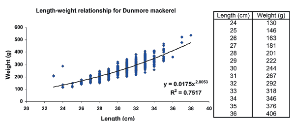 ![]() In order to secure their market and to try to raise the price of mackerel landed locally, Dunmore East Fisherman's Co-op decided to investigate the development of a quality scheme for their day boat hand-line caught mackerel, and they approached BIM for assistance with the development of such a scheme. The first thing to do was to develop the specification for the premium quality fish and, to do this, the quality of the mackerel landed had to be assessed. This process consisted of a number of checks, including temperature on landing, physical appearance and size of mackerel. As the vessels involved are relatively small, it can be difficult for them to ice the fish effectively at sea. To address this, BIM made available to the fishermen a number of insulated ice bins of three sizes, 70, 140 or 310 litres. Obviously the temperature of the fish on landing depended on the time they had spent in ice after being caught, and therefore a sliding scale of acceptable temperature with respect to the time of catching was devised based on best icing practice: e.g. temperatures should not exceed 8�C if the fish were aboard for more than four hours. In terms of appearance, it was determined that the mackerel should have no bruising or crushing, and the gills should be a strong red colour. In addition, a critical element for the buyer was the fillet yield, and therefore determining the size grade was essential. It would not be feasible to weigh each individual fish, so the length/weight data collected (Figure 1) were used to decide on a number of fish per 5 kg for the premium grade. It was decided that the count per 5 kg should not exceed 24 fish, which would give an average individual weight of 208g and, assuming a yield of 50%, 104g of fillets. As length is more readily determined than weight when at sea, the length-weight relationship (Figure 2) was used to arrive at a minimum length for premium grade mackerel of 28cm. An examination of the size composition of mackerel landed by five boats showed that they would have to grade at sea to land fish of the premium specification. ![]() ![]() The fish lovers are appreciating it, as the volumes landed in September 2002 and 2003 were similar, but the value increased by 25%. In addition, the scheme generated on average, an extra order per week. Contact: Catherine Barrett, BIM, PO Box 12, Crofton Road, Dun Laoghaire, Co. Dublin; E-mail: [email protected] |