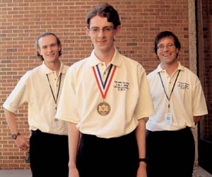 ![]() The Irish IOI 2003 Team was selected from the finalists at the IBM/DCU Computer Programming Olympiad held in DCU in December 2002. The team followed an online training programme designed and implemented by Charlie Daly & Ciar�n O Conaire. They also attended an intensive residential course in the School of Computing, DCU, prior to their departure to the USA. Martin was also awarded the �2,500 IBM Scholarship for winning the IOI Gold Medal at an awards ceremony in September. Charlie Daly has been the Irish IOI Team Leader since 1993, when Ireland first participated in the IOI in Argentina. He and Michael A. Cotter were the co-founders of the IBM/DCU All Ireland Schools Programming Competition in 1994. This was later incorporated into the IBM/DCU Irish Science Olympiad, when Ireland began participating in the IChO, IBO and IPhO. Ciar�n O Conaire (2003 Deputy Team Leader) was a bronze medal winner at the 1999 IOI in Turkey. Later that year he became an undergraduate student in DCU and was awarded a first class honours B.Eng. (Telecommunications Engineering) degree in 2003. He is at present pursuing a Ph.D. with Dr Noel O Connor in the Centre for Digital Video Processing. IBM University Scholarship Awarded Four Irish students, selected and trained for the International Science Olympiads at Dublin City University, were awarded IBM University Scholarships by the Country General Manager, Mr Michael Daly, at an awards ceremony at the IBM Headquarters, Dublin. Martin Orr was the first Irish student to be awarded the E2,500 IBM University Scholarship for achieving success at the annual International Science Olympiads. Martin was a member of the four strong Irish team that competed in the International Olympiad in Informatics (IOI) in Wisconsin University, USA in August 2003. The best 260 competitors from over seventy countries took part. IBM scholarships for �750 were awarded to Paul Webster, the High School, Zion Road, Rathgar, Dublin, who won a bronze medal at the International Biology Olympiad (IBO) in Minsk, Belarus. Lauren Rutherford, Foyle & Londonderry College, Derry, was equally successful at the International Chemistry Olympiad (IChO) in Athens, Greece; and Michael White, of the Hamilton High School, Bandon, Co. Cork, won a bronze medal at the International Physics Olympiad (IPhO), which was held in Taiwan. ![]() " I was very pleased to have the opportunity to travel to Wisconsin University for the 2003 International Olympiad in Informatics, and even more delighted to come home with a gold medal. The competition questions were difficult but enjoyable. It was great to meet so many people of my own age from all around the world who share an interest in computing and to join in social activities with them." Charlie Daly, Irish IOI Team Leader, said: " Martin winning the gold IOI medal is an incredible achievement. He is a very talented young man. Only a handful of people could solve the IOI programming problems in the time allocated as Martin did." At the presentation of the IBM University Scholarships, Mr Michael Daly, Country General Manager at IBM, noted that: " In a time where innovation and development are vital to support the economy, these students have proved that we do have the talent in Ireland to compete on a global scale. We sincerely congratulate the students, their parents, their teachers and the Science and Computing faculties at DCU." Michael Cotter, Director of the Irish Science Olympiad added: " All the international medal winners have achieved an amazing level of success when you consider that some countries specifically train students over many years for these events. The recognition from IBM, who have sponsored the event in Ireland for the past ten years, is well deserved and much appreciated. The DCU Science and Computing staff who, year after year, commit time and effort to supporting the Olympiads, are to be congratulated." Contact: Michael A. Cotter, Director, Irish Science Olympiad, Science Faculty, DCU, Dublin 9; E-mail: [email protected] |