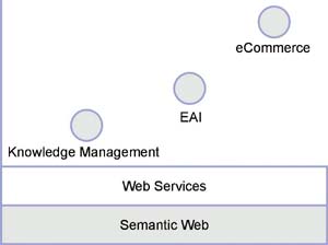 In June 2003, NUI Galway was awarded �12 million over five years from Science Foundation Ireland (SFI) to fund the new Digital Enterprise Research Institute (DERI). The Institute, which is being co-funded by Hewlett Packard's European Software Centre, will be at the forefront of research into the next generation of web technology � the Semantic Web. The new Institute is directed by Professor Dieter Fensel, a leading world figure in Semantic Web research, and Professor Christoph Bussler, a leading figure in Semantic Web Services (SWS) research, who plan to build the number of research staff in DERI to over 60 post graduate and post doctoral researchers by 2008. Conceived by the architects of the Worldwide Web, the Semantic Web provides a way of managing the explosion of information on the Web. Still in its infancy, the Semantic Web, when fully developed, will revolutionise how people utilise the Web. Research at DERI is organised around clusters, representing the Institute's areas of expertise. The figure depicts the different clusters and their relationship to each other. Semantic web and web services build the foundation for the three application areas � knowledge management, EAI and eCommerce. ![]() Semantic Web The Semantic Web cluster is developing and researching the infrastructure for new types of applications in eGovernment, eCommerce and eSociety (e.g., Online Social Networking). Infrastructure components currently under development are: scalable metadata storage and retrieval techniques, reasoning engines able to handle heterogeneous data, ontology development, -deployment and -evolution, and content annotation of metadata. Other areas of interest are distributed computing � especially in the area of P2P and Grid computing. Initiation of, and collaboration with, standardisation efforts through foundation technology groups such as the W3C working group, and applications groups in both the scientific and industry domains will ensure that DERI acts as the crystallisation and integration point for Semantic Web infrastructure world-wide. Open-source prototypes enable the rapid adoption of technology and lead to leading status of DERI technology in the Semantic Web area. This cluster is lead by Dr Stefan Decker ( [email protected] ). Semantic Web Services The Semantic Web Services cluster, as its main goal, is develop-ing a scaleable Semantic Web Service modelling and execution solution with a combination of Web Service and Semantic Web technology. Web Services and Semantic Web technologies address different problem spaces. Our approach is to consider these two technologies complementary, and to combine them to develop a more powerful technology, namely Semantic Web Services. Under the lead of Professor Christoph Bussler ( [email protected] ), this cluster aims to implement a complete software stack comprising of a conceptual model of Semantic Web Services, a language to define Semantic Web Services, as well as a modelling and execution environment for the definition and execution of these services. As part of the research work, the following topics will be investigated: Web Service Modelling Framework and Language, Semantic Web Service Mediation, Semantic Web Service Detection and Introspection, Semantic Web Service Invocation, and Semantic Web Service Execution. Knowledge Management Organisational efficiency depends on the effective management of innovation. Innovation leads to new products and services that delight customers, high quality processes that keep costs competitive, and agile organisations capable of meeting unforeseen challenges. Knowledge management is a principal approach to improving innovation. In many organisations, it is innovation that brings knowledge management to life and puts it to work for the benefit of the organisation. Organisations spend an average of 4% of turnover on innovation, aimed at increasing efficiency, expanding the product portfolio, and developing new services. Research shows that up to 90% of this innovation fails. The aim of the Knowledge Management cluster is to provide semantic web portals and collaboration environments that will facilitate highly efficient management of innovation. The technological mission is to create ontology needed for semantic innovation community portals and to make extensive usage of semantic web technologies for enhanced information sharing among innovation communities of practice across the extended enterprise. This cluster is lead by Dr David O'Sullivan ( [email protected] ). Enterprise Application Integration and E-Commerce E-Commerce is giving choices unimaginable a few years ago. But it can be a problem trying to understand how two offers differ. Does economy and large mean the same thing for two different brands of soap powder? Understanding these semantic differences today is mainly a human endeavour. Semantic annotation of documents will provide the ability to perform semantic querying and ontology based browsing. People and computers will find what they need more easily using this powerful new approach. They also will find information that they would have missed using conventional searching. EAI is one of the largest areas of Information Technology spend in the world today. It is difficult because of the semantic differences that occur between different businesses, systems and processes. A large proportion of the cost of integration is attributable to the analysis of those differences and understanding how to bridge them. Mediation based on ontologies for businesses, processes and systems has great potential for enabling the automation of integration. Semantic Web technologies have the potential to be disruptive in both eCommerce and EAI. Our research is trying to discover how this disruption can take place. Pat Croke leads this cluster ( [email protected] ).