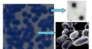 In the world of micro-organisms, a bacterium's deadliest enemy is a specialised virus called a phage. These tiny entities with unusually structured features have evolved into an elite and deadly attacking force. Although considerably smaller than the bacterial cells they infect, they systematically set about targeting and killing, continually increasing their number until every susceptible cell has been destroyed.
