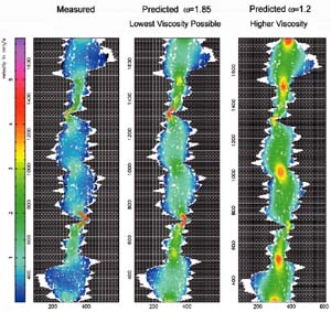 Understanding fluid flow in the Earth's crust is important for a number of geophysical and environmental problems, including groundwater contamination, waste disposal, and oil extraction. Rocks in the crust are extremely heterogeneous, however, with fractal distributions of fractures and varying porosities, and hence correctly predicting fluid flow can be very difficult. The general approach to this problem is to construct sophisticated numerical models of the expected crustal heterogeneity and simulate flow within them. Unfortunately such models are only tested against simple geometries and therefore a leap of faith is required to assume that they actually produce the correct results in realistic complex geometries. ![]() A comparison between observed and simulated velocity fields is shown in the figure. Here the model was a single rough fracture, but similar comparisons have been made in fractured porous media. The fracture on the left shows the measured velocity field, while the two on the right are for Modified Lattice Boltzman simulations in a fracture with the same geometry. There are clear differences between the measured and simulated velocity fields, which appear to be due to problems in defining viscosity accurately in the numerical model. The velocity fields measured during this project are available from the Geophysics Research Group. More information about the Group and its work on fluid flow in fractured porous media, earthquake physics, and aeolian sediment transport can be found at http://www.science.ulst.ac.uk/crg/geophys/index.html or by emailing Prof. John McCloskey at [email protected] |