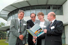 (L-R) Pictured at the launch of the Proteome Research Centre: Prof Denis Hochstrasser, Geneva University Hospital; Prof Michael Dunn, then King's College London & currently at Conway Institute; Dr Rosamunde Banks, University of Leeds and Prof Stephen Pennington, Conway Institute.