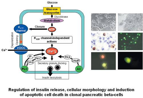 Regulation of insulin release, cellular morphology and induction of apoptotic cell death in clonal pancreatic beta-cells