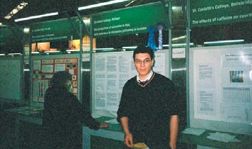 In January 2005 I entered a project for the Esat BT Young Scientist & Technology Competition on the topic of Histamine Poisoning. Histamine food poisoning is a food�borne chemical intoxication caused by the ingestion of fish containing unusually high levels of histamine. Fish from the family Scombridae, particularly mackerel and tuna, contain high free levels of histidine in their flesh and are most commonly implicated. Histamine is formed when bacteria produce decarboxylase, which acts on free histidine in the fish muscle. Fish spoilage by biogenic amine production is enhanced by improper preservation and inadequate refrigeration with the optimal temperature for histamine production being 25�C. Once a bacterial population has been established, enzyme activity continues even when refrigeration temperatures are applied, although bacterial growth stops. A sharp metallic, bitter or peppery taste and a honeycombed appearance may be present in the fish. Studies were carried out to demonstrate the conversion of histidine to histamine by High Performance Liquid Chromatography (HPLC), using the enzyme histidine decarboxylase. Histamine is a toxic biogenic amine derived from the natural amino acid histidine. It causes dilation of blood vessels and contraction of smooth muscle (e.g. lungs). It is released in large amounts after skin damage. Histamine is also released in anaphylactic reactions and allergic conditions. A standard curve was set up for histidine and histamine. By using a Linear Regression Programme unknown amounts of histidine were calculated. Using the enzyme assay for histidine conversion, samples were analysed at different time points. The histidine reduced rapidly in the absence of citrus bioflavanoid while in the presence of bioflavanoid, it reduced more slowly. This suggested that the enzyme was inhibited by citrus bioflavanoid. Using the same enzyme assay for histamine conversion, samples were analysed at different time points. The histamine did not increase as rapidly in the presence of bioflavanoid. This again suggested that citrus bioflavanoid inhibited the enzyme. Mackerel was then incubated in the presence and absence of citrus bioflavanoid. Samples were analysed at different time points up to 3 days. The histamine did not increase as rapidly in the presence of bioflavanoid. This again suggested that bioflavanoid inhibited the enzyme histidine becarboxylase. The results demonstrated that bioflavanoid inhibit histidine decarboxylase. Previous work has shown that bioflavanoid also kill bacteria. Thus, this project would suggest that dipping fish (especially Scombroids e.g. tuna and mackerel) would help to prevent spoilage by reducing the production of histamine. I am very grateful to Dr Jack Bloomfield of the Chemical Analysis Laboratory (CAL Ltd) for his assistance and interest, and also to Mr Brendan Chambers of BioNatural Solutions Ltd for his support. ![]()