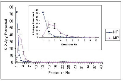Elution profile of 2-aminopyridine in acetonitrile from an imprinted sol gel polymer. [1]