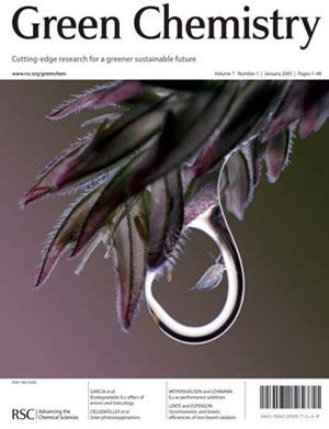 ![]() Recent biodegradable ionic liquid and synthetic photochemistry research by the group is highlighted on the cover of the Royal Society of Chemistry publication 'Green Chemistry' shown here. The priority of the Green Chemistry Group is to develop clean and environmentally friendly synthetic methods for the pharmaceutical industry. The research areas of the Green Chemistry Group are: