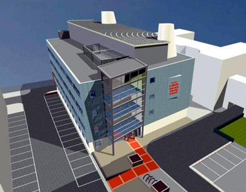 ![]() The Centre has been formed as a result of a �15.8 million grant under the second round of the Support Programme for University Research (SPUR), �2.8 million from the Science Research Investment Fund (SRIF) as well as a �1.7 million investment by Queen's University. The SPUR Programme is a public/private partnership financed by the Department of Employment and Learning and The Atlantic Philanthropies. The establishment of the CCRCB has galvanised the development of the strategy that the University outlined in the 1998 Academic Plan to enhance the reputation of Queen's as a University of national and international standing. In the Strategic Plan developed in 2002 the University committed itself to the development of an Institute of Health and Life Sciences (IHLS) in order to achieve greater integration, cost effectiveness and critical mass through interdisciplinary research centres that would focus on a small number of health and life science areas. The development of the CCRCB spearheads the development of the IHLS and acts as an exemplar for the development of its other constituent Centres. Agreement has been reached with the Belfast City Hospital Trust for the purchase and clearance of the site (adjacent to the Medical Biology Centre and Whitla Medical Building) to make way for the development of the 4500m 2 four-storey building. The design team has been appointed by competitive tender and the University was fortunate to be able to enter into a contract with Boswell Mitchell Johnston (BMJ) architects, a Scottish firm with a lot of experience in building biomedical research facilities in Scotland and the rest of the UK. The building is designed primarily as a generic research facility housing most staff with an interest in bio-molecular research and synthetic chemistry. Construction of the building started in September 2005 and the building is due for completion in April 2007.