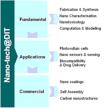 ![]() The INDICATE Team Interdisciplinary Cancer Research Team DIT's recently established Indicate team, housed in the Focas Institute, specialises in mechanisms of cancer induction and the development of novel diagnostic tools and therapeutic agents. Indicate draws together researchers from the Schools of Physics (H.J. Byrne, J. Walsh, A. Meade), Chemical and Pharmaceutical Sciences (M. McNamara) and Biological Sciences (H. Lambkin) and the Radiation and Environmental Science Centre (F.M. Lyng). The team are currently focussing on four main research areas. ![]() ![]() In the third area, mechanisms of solar UV radiation damage in human skin cells are being investigated. An EU Marie Curie training fellowship will enable a postgraduate researcher, Alanna Maguire, to continue this research at the LIGHT laboratories, Leeds University, during 2006. The final research area aims to chemically analyse medium from irradiated cells to identify the currently unknown "bystander" factor. This factor produced by irradiated cells can also affect unirradiated cells and as such could potentially be used as a novel therapeutic agent. This research is associated with an EU Integrated Project involving 12 other EU laboratories. For more details on any of these research areas, contact Dr Fiona Lyng at [email protected] ![]() The Nano-tech@DIT Team Nanotechnology Research The Nano-tech@DIT group was established through TERS in 2005 and comprises several research groups working on nanotechnology based projects. Nanotechnology is an umbrella term used to describe a number of processes, on a scale of 1 � 100nm. In essence it is an enabling technology rather than some tangible quantity. The explosion of nanotechnology-based research in the last decade has led to a vibrant and highly competitive research area. The focus for much of the research has been upon the application of nanotechnology in a wide range of industries, spanning the highly technical electronics sector to more traditional manufacturing sectors like the food industry. However, as nanotechnology moves out of the research laboratory and into the public domain, potential regulatory issues will emerge ranging from worker protection to environmental exposure and risks. Previous technologies such as biotechnology failed to consider these aspects and as a result experienced a considerable public backlash. The Nano-tech@DIT group is thus taking a proactive approach to nanotechnology by the implementation of a strong nanotechnology educational program as well as the incorporation of nanotoxicology and risk assessment into the daily nanoscience practices at the institute. Nano-toxicology is an emerging discipline evolving from studies of ultrafine particles and is one of the fastest growing areas of nanotechnology. DIT has in the past developed considerable experience in handling and characterising nano-particles and is now rapidly expanding its toxicology expertise to address the needs of the nanotechnology community as a whole. The institute is also developing a strong nanotechnology educational program with the launch of Ireland's first undergraduate BSc in Science with Nanoscience in September 2006. This new program offers a unique interdisciplinary approach to science. The need for nanoeducation however extends beyond the development of a sufficient skills base for industry and so the group will also attempt to increase public awareness of nanotechnology in Ireland through a series of work-shops, surveys and its website. Details of this team are available at: www.nanotech.dit.ie or from Dr Gordon Chambers at [email protected] ![]() Contact: Dr Hugh J Byrne, Manager, Focas Institute, Dublin Institute of Technology, Camden Row, Dublin 8. Tel: (01) 4027900 E-mail: [email protected] Web: www.focas.dit.ie |