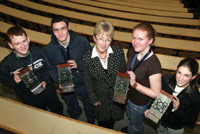 ![]() Professor Richard O Kennedy (Biology), Dr. Paraic James (Chemistry), Charlie Daly (Computer Programming) and Dr. Paul van Kampen (Physics) who are each responsible for one section of the Olympiad had teams of DCU staff and postgraduate students ready to administer, supervise and correct the tests. At 4.30 p.m. the students, many accompanied by their parents and teachers crowded into a packed Larkin Theatre for the closing ceremony. Michael A. Cotter (ISO Director) opened the proceedings by welcoming Minister Mary Hanafin TD, - Minister for Education & Science, Mr. Michael Daly - IBM Ireland Manager, Mr. Peter Brabazon - Programme Director, Discover Science & Engineering, Professor Ferdinand von Prondzynski, DCU President and Ms. Mary Whelan - DES, North-South Cooperation Unit. Minister Hanafin thanked the parents and teachers for their support and encouragement of these talented young Irish scientists and IBM, the Department of Education & Science and the Forf�s - Discover Science & Engineering programme for sponsoring this event. She was particularly appreciative of the tremendous effort put in by the DCU staff and postgraduate students in bringing the 2006 IBM/DCU Irish Science Olympiad to a successful conclusion. Mr. Michael Daly, Mr. Peter Brabazon and Professor Ferdinand von Prondzynski also thanked everyone involved, highlighted the importance of science both in the school curriculum and in the wider community and expressed their delight at the large numbers of students taking part. They wished the Irish teams well as they prepared for the 2006 International Science Olympiads in July and August. ![]() Contact: Michael A. Cotter, Director, Irish Science Olympiad, DCU. E-mail: [email protected] |